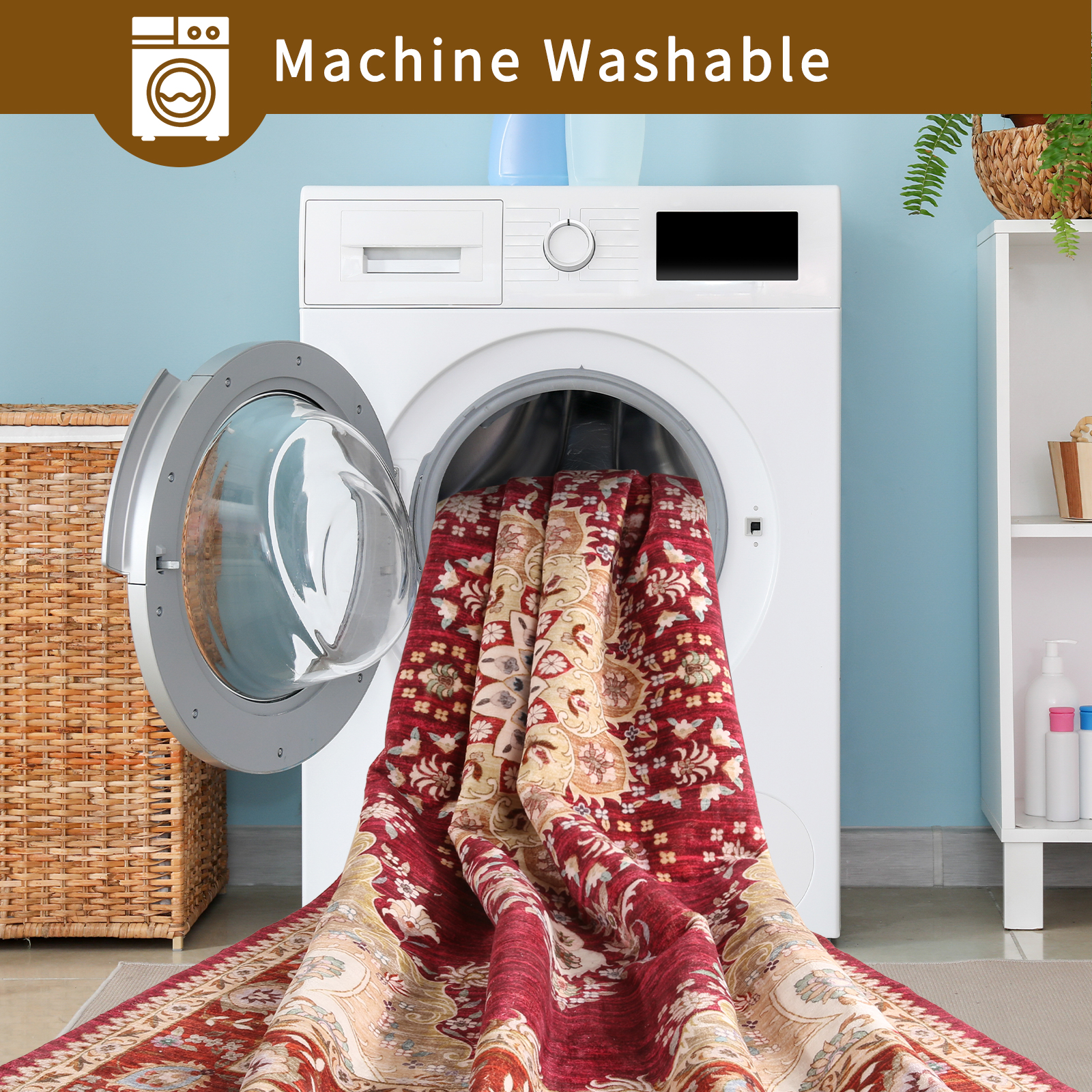 - Machine washable Rug: Our living room Washable Rugs is a machine washable carpet. You only need to roll up this bedroom carpet and throw it into the washing machine for cleaning, which is very convenient. Bohemian rugs can also be cleaned with low-power vacuum wipes or a vacuum cleaner.